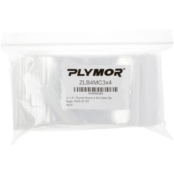Plymor 3" x 4" (Pack of 100), 4 Mil Heavy Duty Zipper Reclosable Plastic Bags