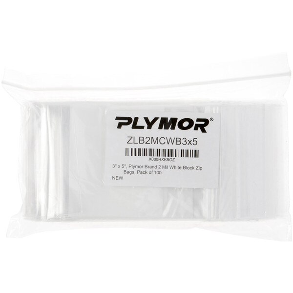 Plymor 3" x 5" (Pack of 100), 2 Mil with White-Block Zipper Reclosable Plastic Bags