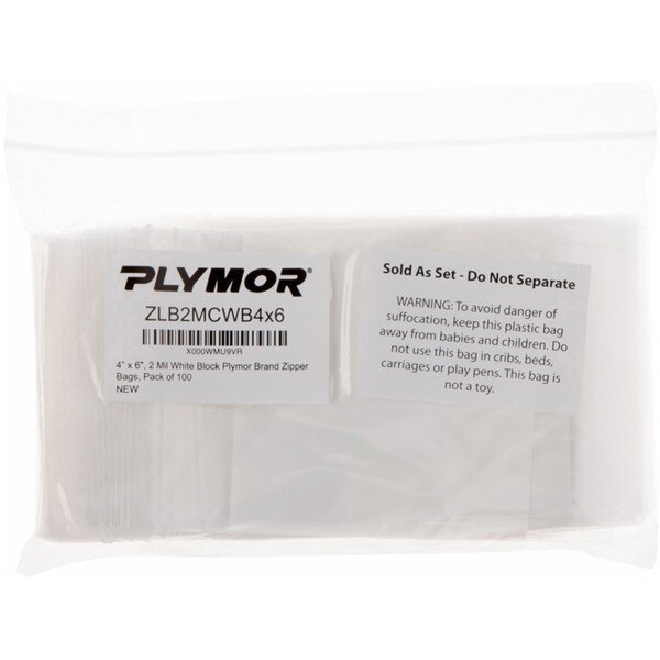 Plymor 4" x 6" (Pack of 100), 2 Mil with White-Block Zipper Reclosable Plastic Bags