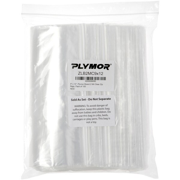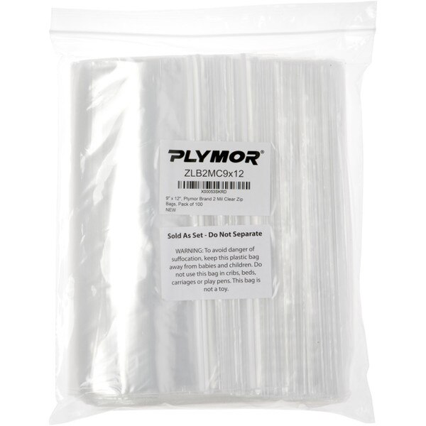 Plymor 9" x 12" (Pack of 100), 2 Mil Zipper Reclosable Plastic Bags