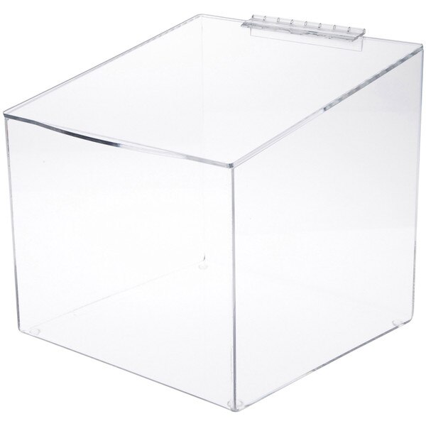 Plymor Clear Acrylic Display Case Box With Angled Top & Hinged Lid, 12" x 12" x 12"