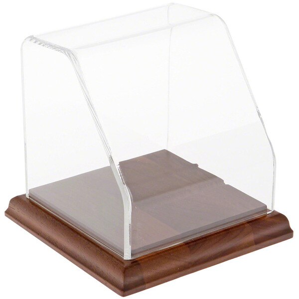 Plymor Clear Acrylic Slanted Front Display Case with Hardwood Base, 4" x 4" x 4"