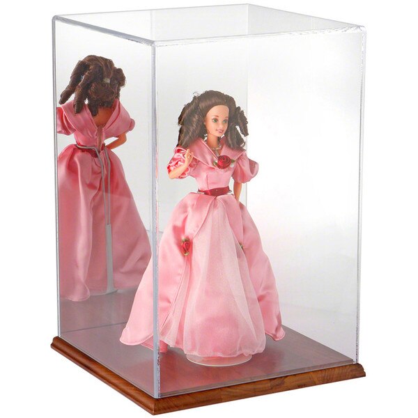 Plymor Clear Acrylic Display Case with Hardwood Base (Mirror Back), 10" W x 10" D x 15" H