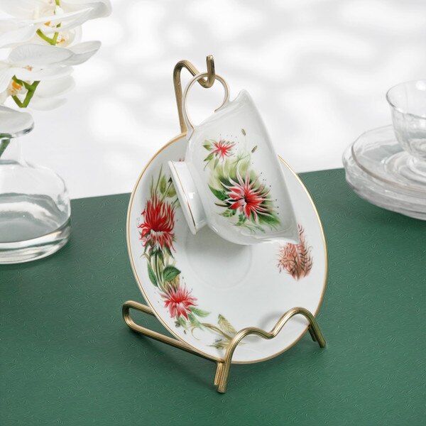 Bard's Shiny Gold-toned Cup and Saucer Stand, 8" H x 3.75" W x 4.25" D