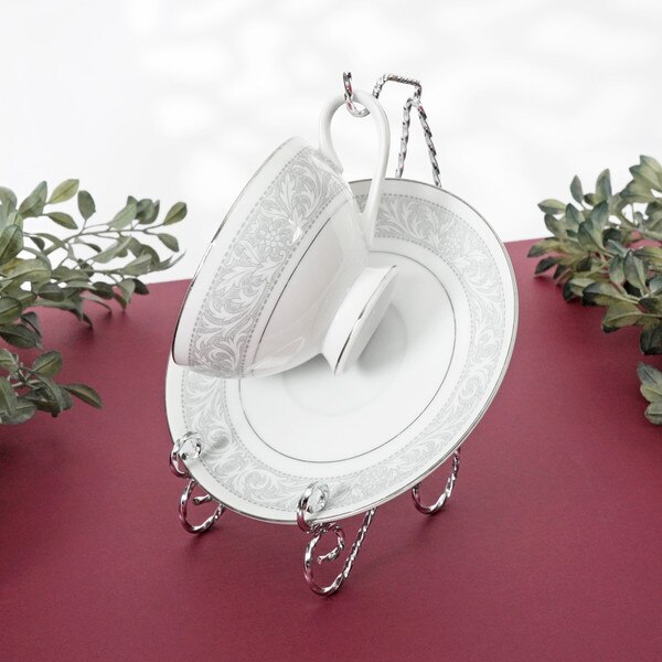 Bard's Scroll Twisted Silver Cup and Saucer Stand, 7" H x 2.5" W x 4.25" D