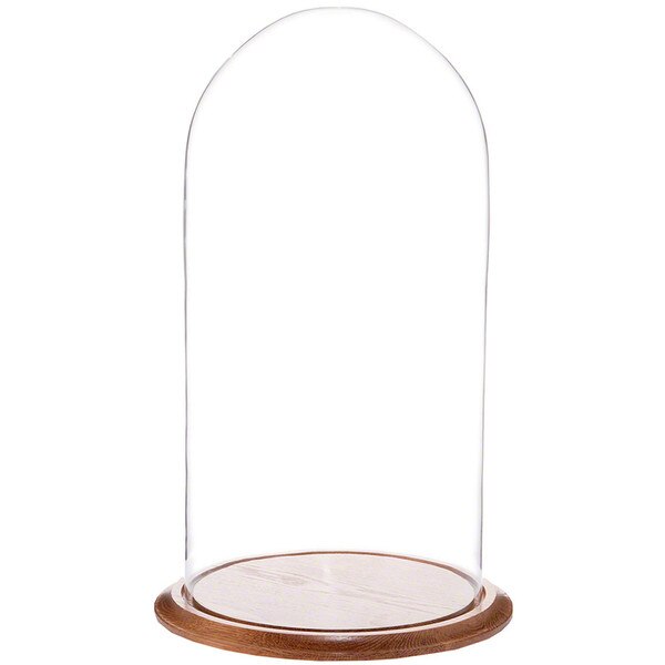 Style: This dome includes an oak wood base. Handcrafted glass domes will have variations including small bubbles and thickening of the glass at the crown which adds character to your display.