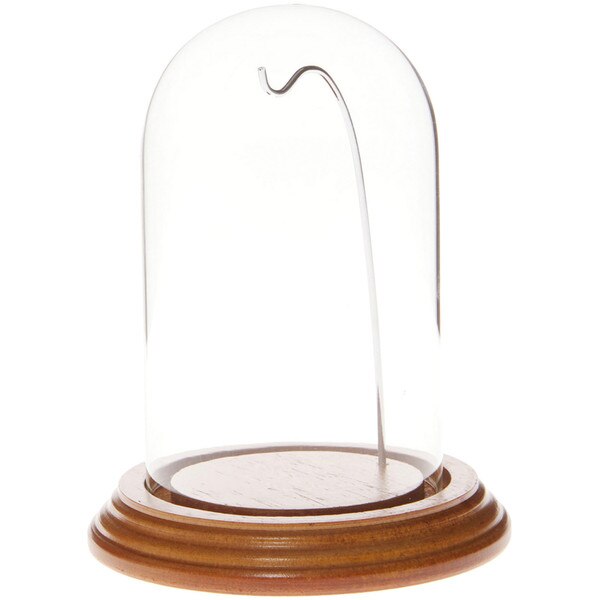 Style: This dome includes an Oak Veneer Base and features a removable Silver Wire which leaves about 4" from the base to the bottom of the hook. Handcrafted glass domes can vary slightly in thickness and/or clarity which adds character to your display.