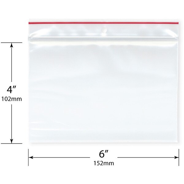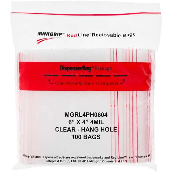 Minigrip Red Line 6" x 4" (Pack of 100), 4 Mil with Hang-Hole Heavy Duty Zipper Reclosable Plastic Bags