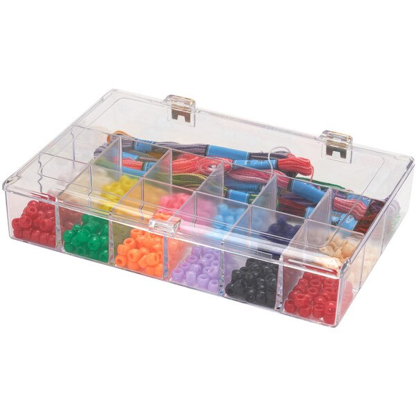 Uses: This hinged plastic divided container is your go-to solution for streamlined and secure storage. It offers a durable and efficient hinged lid and dividers that provide distinct compartments, making it an ideal choice for a variety of applications. Utilize it for separating and storing various items such as art supplies, small tools, office accessories, or fishing tackle with ease. You can also keep your crafting materials neatly arranged, store jewelry or other small accessories, and efficiently manage screws, nails, and other hardware. The fixed dividers ensure your belongings stay securely organized in designated compartments, making your storage and organization tasks more efficient and hassle-free.