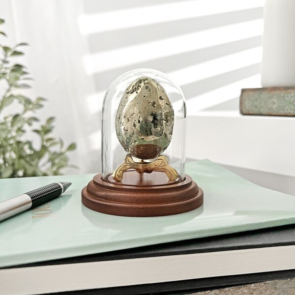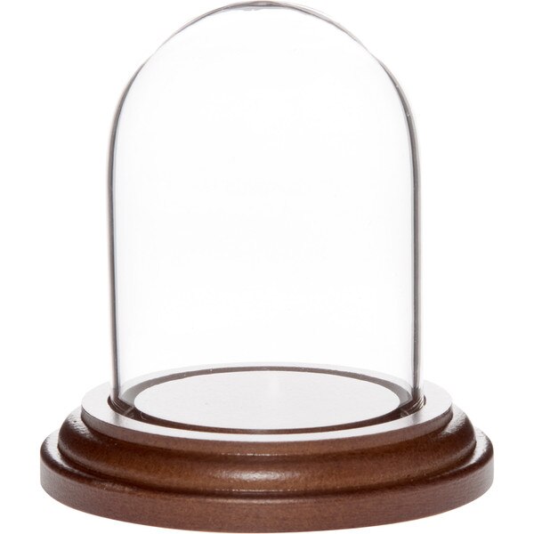 Style: This dome includes a dark wood base that is 2.875 inches in diameter and 0.5 inches thick. Handcrafted glass domes can vary slightly in thickness and/or clarity which adds character to your display.