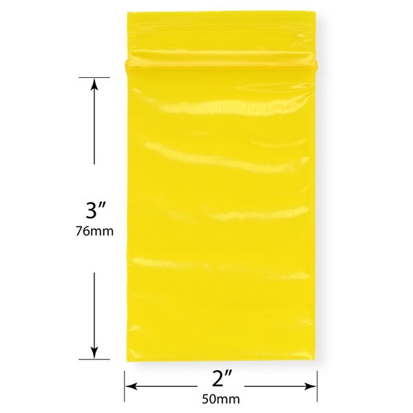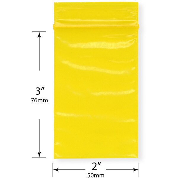 Plymor 2" x 3" (Pack of 100), Yellow 2 Mil Zipper Reclosable Plastic Bags