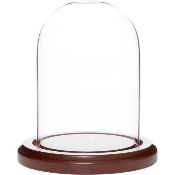 Style: This dome includes a dark wood base that is 4 inches in diameter and 0.5 inches thick. Handcrafted glass domes can vary slightly in thickness and/or clarity which adds character to your display.
