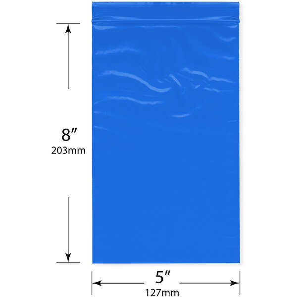 Plymor 5" x 8" (Pack of 100), Blue 2 Mil Zipper Reclosable Plastic Bags