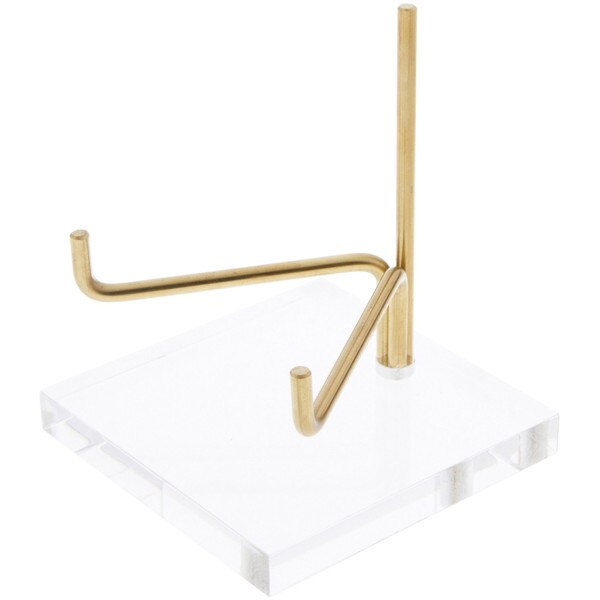 Plymor Clear Acrylic Base with Adjustable Brass Rods to Hold Rock, Fossil, and Mineral Specimen, 4.25" H x 3.25" W x 3.5" D (3" Arm Length)