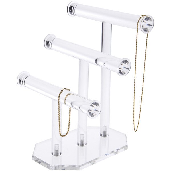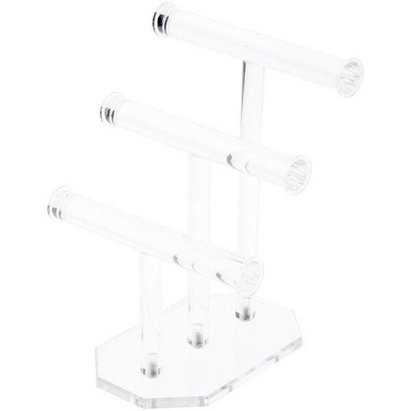 Plymor Clear Acrylic 3-Tier T-Bar Necklace & Bracelet Display Stand, 10.75" H x 8" W x 8" D