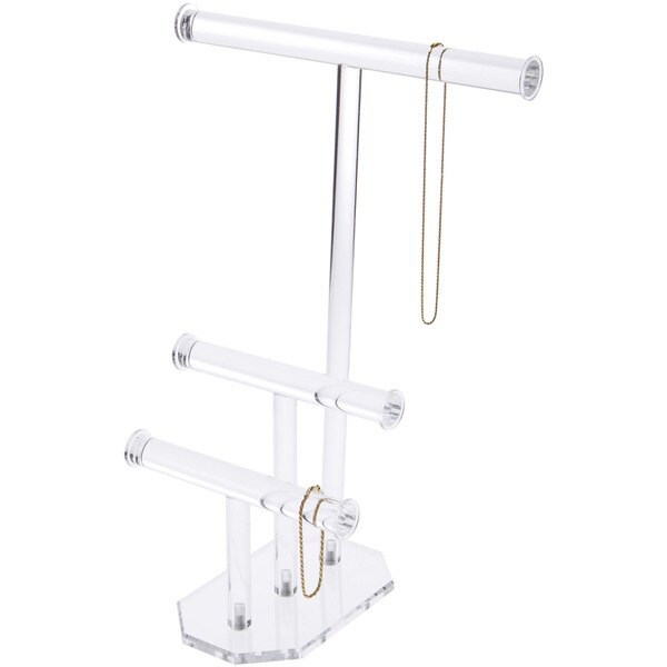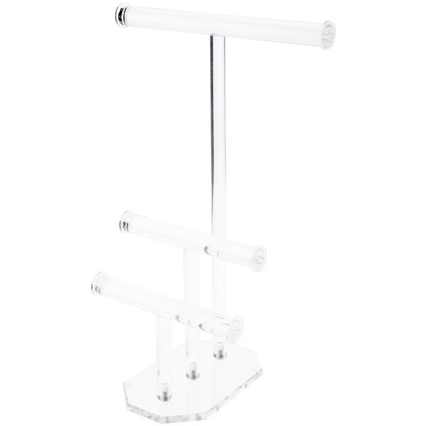 Plymor Clear Acrylic 3-Tier T-Bar Necklace & Bracelet Display Stand, 16" H x 12" W x 8" D