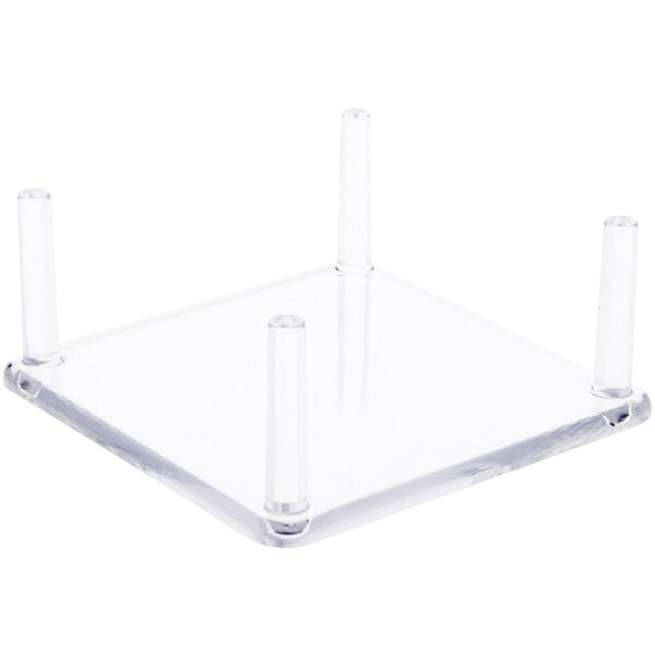 Plymor Clear Acrylic Square Base with 4 Display Prongs for Geode, Mineral or Crystal Cluster, 1.625" H x 4" W x 4" D