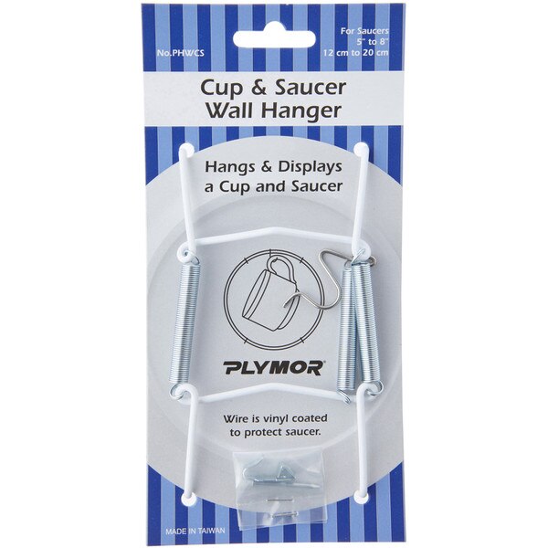 Plymor White Vinyl Finish Wall Mountable Tension Cup & Saucer Hanger, 8" H x 2.75" W x 1" D