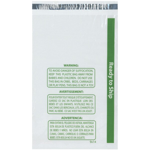 Plymor Ready to Ship 1.5 Mil Wicketed Poly Bags with Permanent Adhesive Strip and Suffocation Warning, 9" x 14" (Pack of 250)