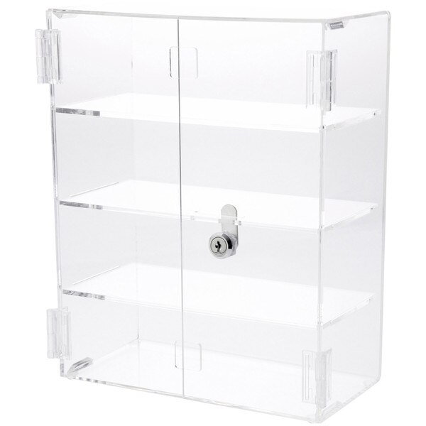 Plymor Clear Acrylic Rectangular Locking Display Case, 3 Shelves, 12.75" H x 10.25" W x 5" D
