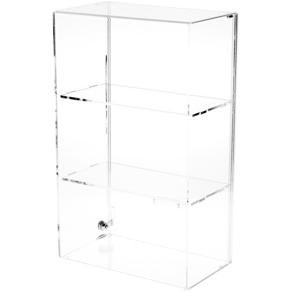 Plymor Clear Acrylic Locking Display Case with Sliding Back, 2 Shelves, 21.75" H x 13.25" W x 7.5" D